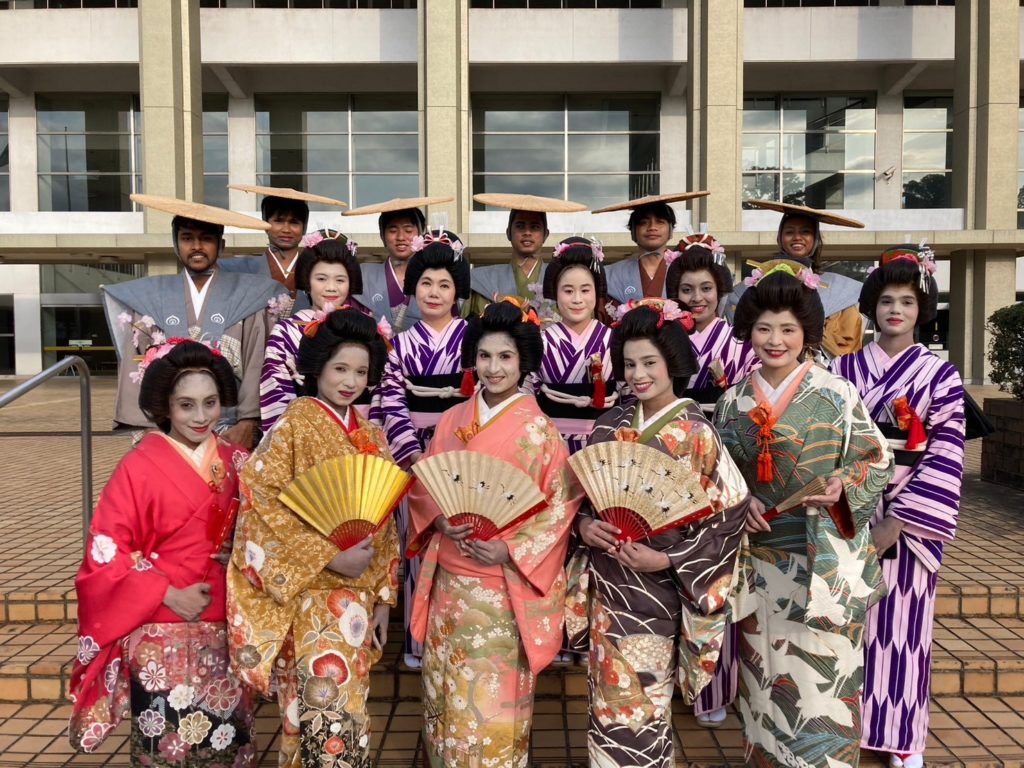 毎年4月に静岡市で行われる大きなお祭りです。駿府城公園を中心に、パレードや踊り、屋台などを楽しむことができます。「大御所花見行列」では、徳川家康の時代の衣装を着た行列を見ることができ、多くの人でにぎわいます。留学生も毎年参加しています。